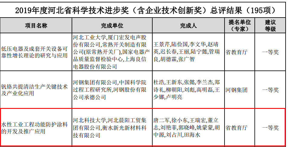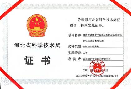 2021年晨陽工貿集團榮獲河北省科技進步二等獎